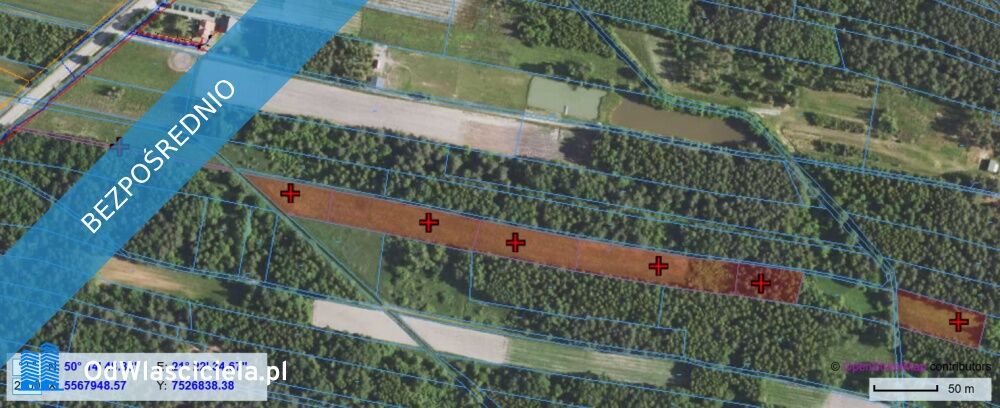 - 6 działek w jednym pasie o szerokości około 25m i ogólnej powierzchni - 1,32 ha